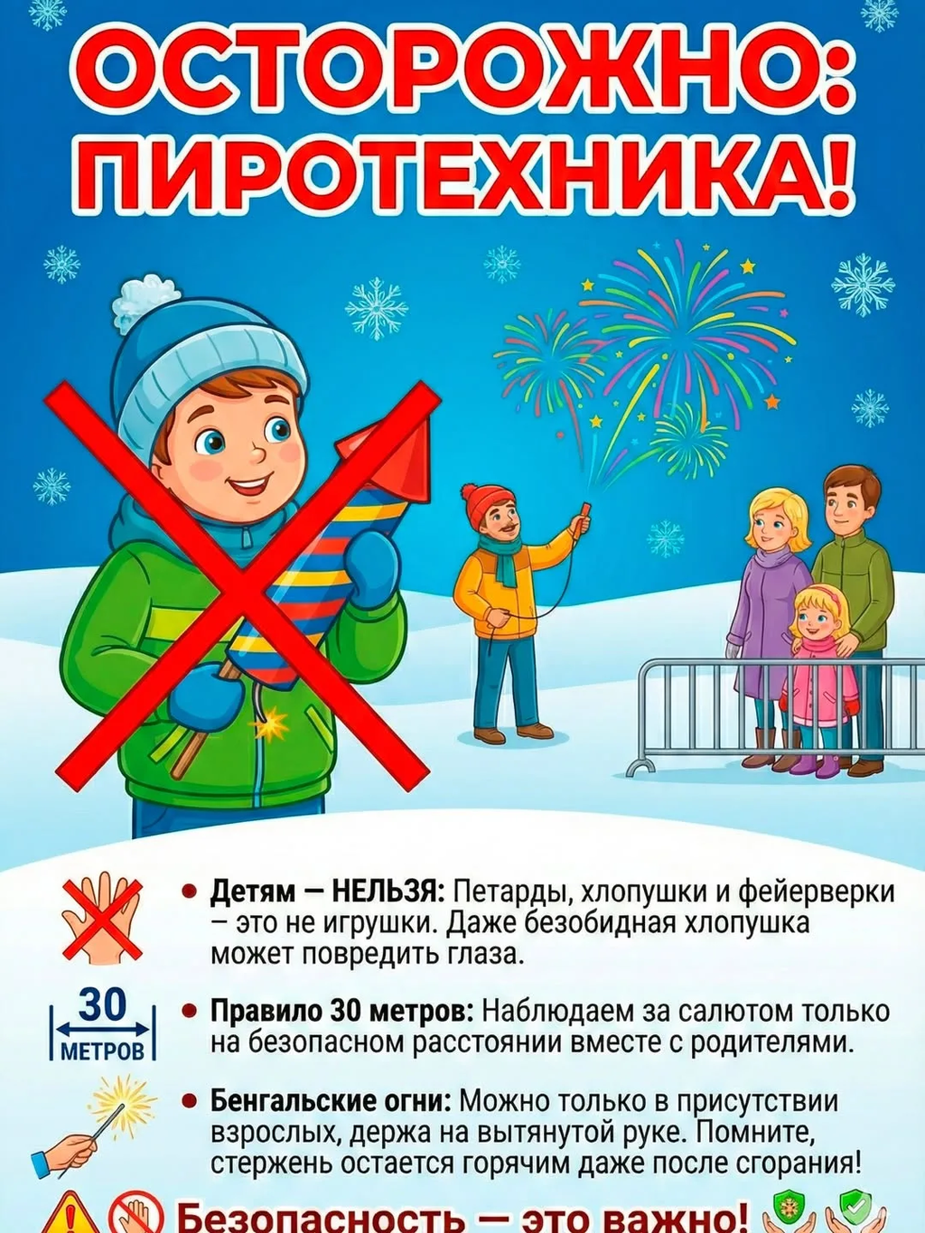 - Повторяйте: Не ограничивайтесь одним разом. Регулярно напоминайте детям о правилах, особенно перед выходом на улицу или перед использованием каких-либо праздничных атрибутов.